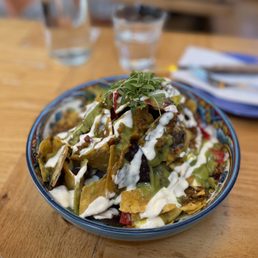 A vegan Mexican spot... incredible! I was with my sister and nieces, and this was a grand dinner experience. The restaurant has indoor and outdoor seating, but we all grabbed a booth inside... and it looks like it's a great thing that we made a reservation! The A/C was up quite a bit, but that is literally my only bad thing moving forward. We were given menus and took a long time figuring out what to get. My sis and I shared the beet and pumpkin empanadas, which were so flavorful and delicious! There was a bit of sweetness, and the guacamole and chimichurri really set it off. My nieces got the tres amigas (chips and three dips), and the sikil pak was the best one -- I've never had it before! Entrees were the real challenge, but I decided on enchiladas verde. I loved the taste of the jackfruit carnitas in it. I tasted my sister's enchiladas mole, which had a slightly different flavor profile going on, and OMG, I wish I got that! The hints of cacao were fantastic. My niece and I shared churritos for dessert, and... omg. That coconut dulce de leche?! It was to die for. I NEED NEED NEED to recreate that. All in all, go to one of the locations and have their vegan Mexican eats. You won't regret a penny.